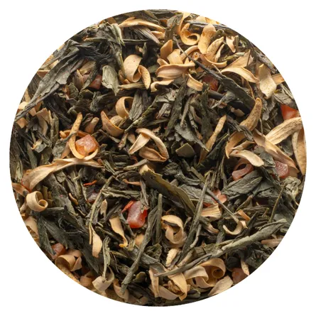 Лёгкий и утончённый купаж на основе зелёного чая Сенча из Китая — с характерным мягким вкусом, сладковато-травяным профилем и лёгкой свежестью.